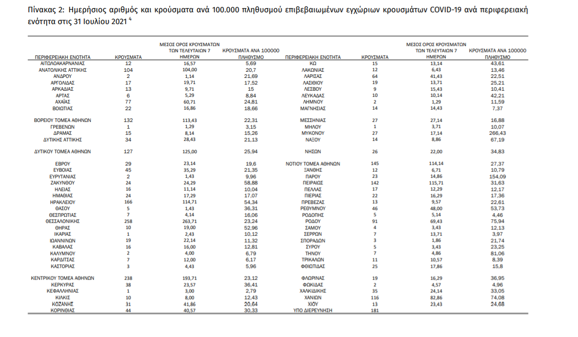 Ο ΕΟΔΥ ανακοίνωσε 2.760 νέα κρούσματα σήμερα, Σάββατο 31 Ιουλίου, ενημερώνοντας για την πανδημία από κορονοϊό στην Ελλάδα. Παράλληλα ανακοίνωσε πως καταγράφηκαν 172 διασωληνωμένοι στα νοσοκομεία ενώ κατά το τελευταίο 24ωρο καταγράφηκαν 17 θάνατοι.