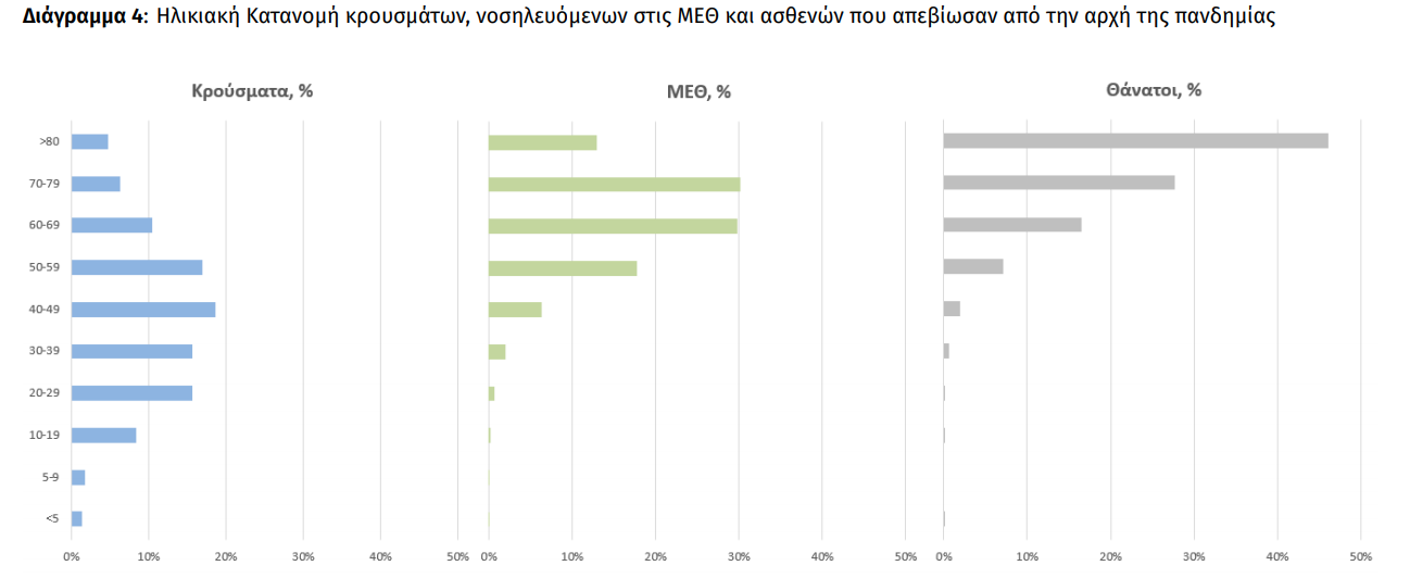 Οι εισαγωγές νέων ασθενών Covid-19 στα νοσοκομεία της επικράτειας είναι 66 (ημερήσια μεταβολή -35.92%). Ο μέσος όρος εισαγωγών του επταημέρου είναι 106 ασθενείς.Η διάμεση ηλικία των κρουσμάτων είναι 43 έτη (εύρος 0.2 έως 106 έτη), ενώ η διάμεση ηλικία των θανόντων είναι 78 έτη (εύρος 0.2 έως 106 έτη).
