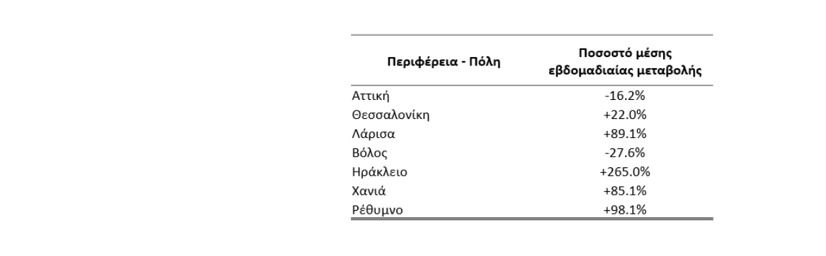 Παράρτημα 2: ΕΘΝΙΚΟ ΔΙΚΤΥΟ ΕΠΙΔΗΜΙΟΛΟΓΙΑΣ ΛΥΜΑΤΩΝ Ανακοινώνονται τα αποτελέσματα των εργαστηριακών ελέγχων του Εθνικού Δικτύου Επιδημιολογίας Λυμάτων για την επιδημιολογική επιτήρηση του ιού SARS-CoV-2 σε αστικά λύματα που αφορούν την περίοδο από 15 έως 21 Φεβρουαρίου 2021. Τα δείγματα προέρχονται από την Περιφέρεια Αττικής και τις πόλεις της Θεσσαλονίκης, της Λάρισας, του Βόλου, του Ηρακλείου, των Χανίων και του Ρεθύμνου. Τα δείγματα λαμβάνονται από τις εισόδους των εκάστοτε Μονάδων Επεξεργασίας Λυμάτων, όπως αναφέρονται παρακάτω, και αντιστοιχούν στον πληθυσμό που εξυπηρετείται από αυτές. Πίνακας 1: Ποσοστό μέσης εβδομαδιαίας μεταβολής στο ιικό φορτίο του SARS-CoV-2 στα αστικά λύματα ανά 100.000 κατοίκους σε σχέση με την εβδομάδα 8-14 Φεβρουαρίου 2021
