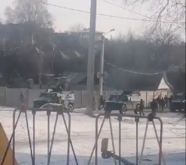 Κυκλοφόρησαν βίντεο που έδειχναν ρωσικά στρατιωτικά οχήματα να οδηγούν μέσα στην πόλη που βρίσκεται στα βορειοανατολικά.