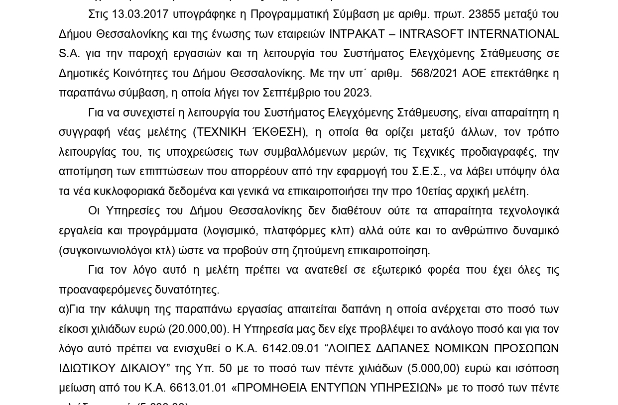 Ωστόσο εντύπωση προκαλεί η «διάγνωση» της «Διεύθυνσης Δημοτικής Αστυνομίας – Τμήμα Ελεγχόμενης Στάθμευσης και Διοικητικής Υποστήριξης», που ευθέως αναφέρει ότι η υπηρεσία δεν διαθέτει το κατάλληλο προσωπικό για να εκπονήσει την Τεχνική Έκθεση αλλά ούτε και τα απαραίτητα κονδύλια.