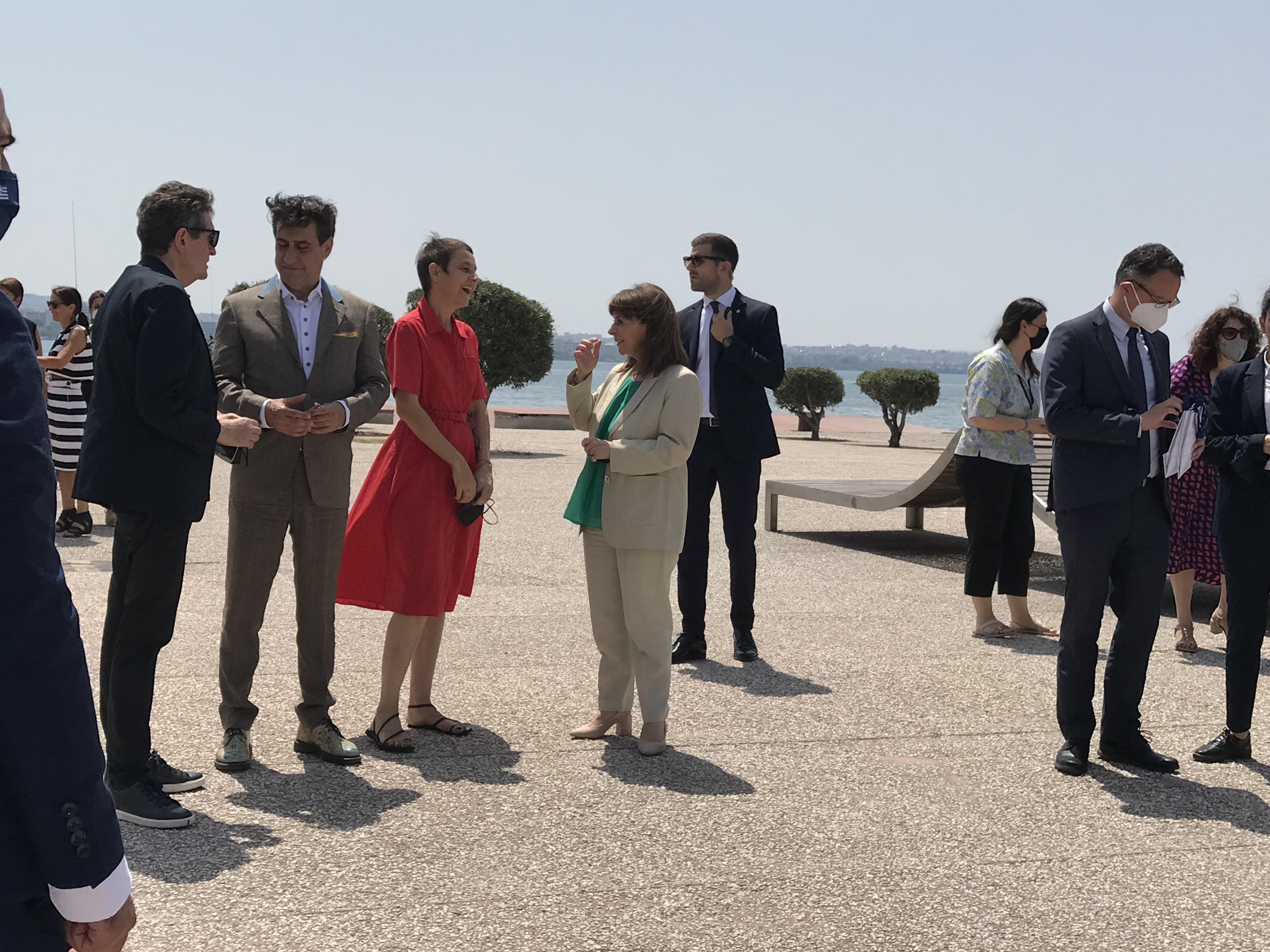 Επίσκεψη στους χώρους του Φεστιβάλ Κινηματογράφου Θεσσαλονίκης στο Λιμάνι πραγματοποίησε το μεσημέρι η Πρόεδρος τα Δημοκρατίας Κατερίνα Σακελλαροπούλου, την οποία υποδέχτηκαν η γενική διευθύντρια Ελίζ Ζαλαντό και ο καλλιτεχνικός διευθυντής Ορέστης Ανδρεαδάκης.