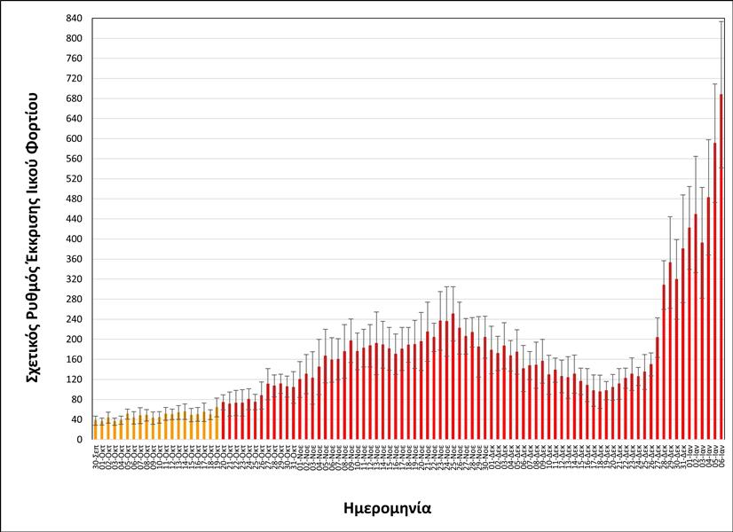 Όπως φαίνεται στα διαγράμματα που παρουσιάζει το ΑΠΕ-ΜΠΕ (επισυνάπτονται), έπειτα από δύο ημέρες που παρατηρήθηκαν ενδείξεις επιβράδυνσης της εκρηκτικής ανόδου του ιικού φορτίου, ακολούθησε νέα αύξησή του σε σημαντικά υψηλότερο επίπεδο.