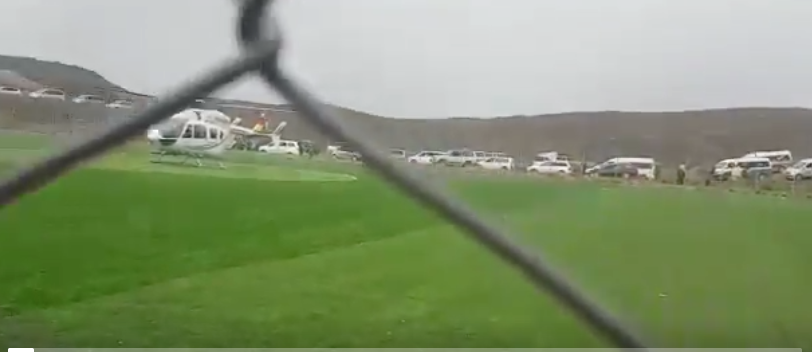 Στις εικόνες που μεταδόθηκαν από τα τοπικά μέσα ενημέρωσης το ελικόπτερο απογειώνεται –υπό βροχή– από ένα ποδοσφαιρικό γήπεδο, προσπαθεί να πάρει ύψος