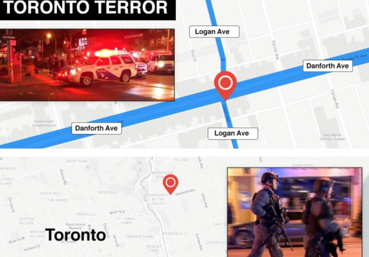 Υπήρξαν αναφορές για πυρά στη συνοικία Γκρίκταουν, περί τις 22:00 τοπική ώρα (05:00 ώρα Ελλάδας), σύμφωνα με τον ειδησεογραφικό ιστότοπο CityNews.com.