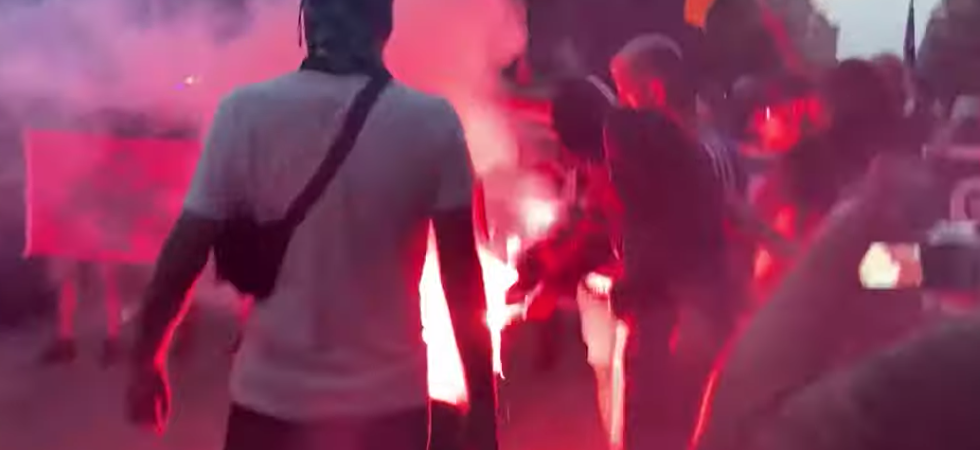 Φωνάζοντας συνθήματα υπέρ της διατήρησης του μουσειακού χαρακτήρα της Αγίας Σοφίας, οι διαδηλωτές του Ιερού Λόχου κατευθύνθηκαν προς το Τουρκικό Προξενείο επί της οδού Αγίου Δημητρίου,