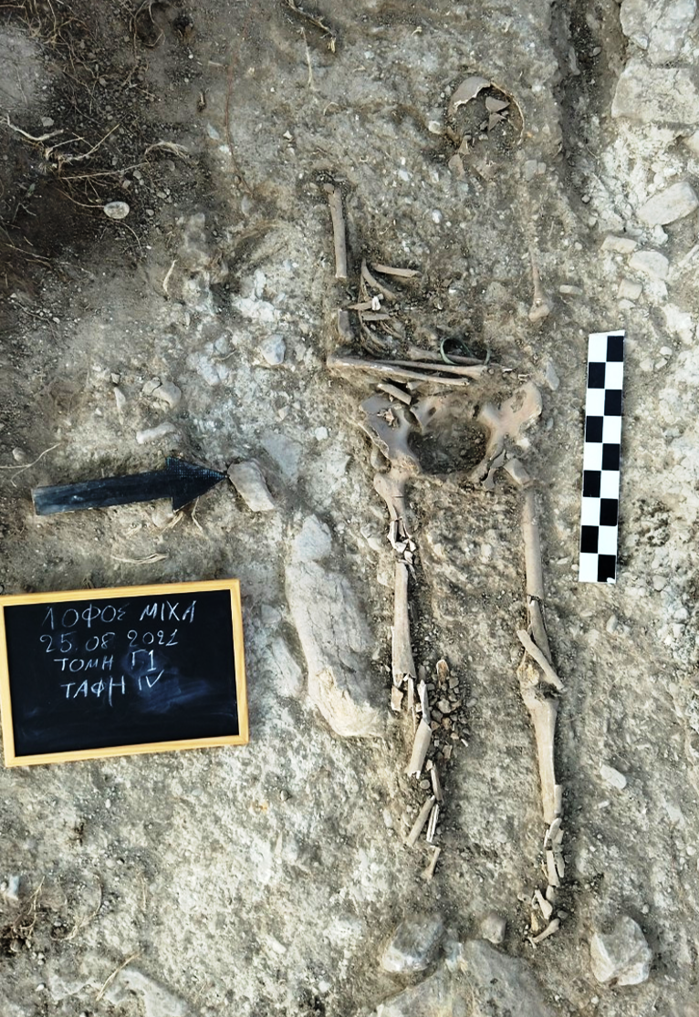 Η ανασκαφική έρευνα έφερε επίσης στο φως τμήματα δυο νεκροταφείων ελληνιστικών και υστερορωμαϊκών χρόνων: στην πρώτη περίπτωση ερευνήθηκαν λακκοειδείς τάφοι, που έφεραν επικάλυψη από αργούς λίθους. Στα κτερίσματα που συνόδευαν τις ταφές συγκαταλέγονται αγγεία- σκύφοι, πινάκια, αμφορείς και οινοχόες- αλλά και μεταλλικά αντικείμενα, όπως χρυσά ενώτια και σιδερένιο εγχειρίδιο.