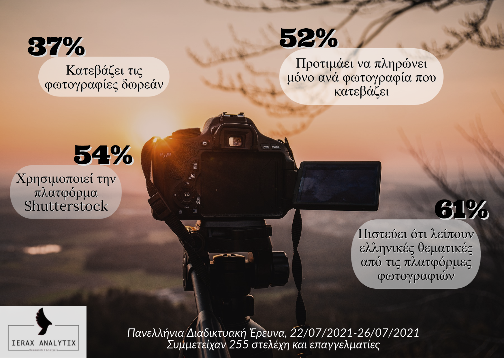 Για τον λόγο αυτό η Ierax Analytix σε συνεργασία με την Imperius, ερεύνησαν διεξοδικά το θέμα των φωτογραφιών stock, ενώ επικοινώνησαν με στελέχη και επαγγελματίες οι οποίοι αξιοποιούν τέτοιου είδους φωτογραφίες στο πλαίσιο της εργασίας τους, με σκοπό να μάθουν τη γνώμη τους για τις υπάρχουσες πλατφόρμες αλλά και το πως πιστεύουν ότι αυτές θα μπορούσαν να βελτιωθούν.
