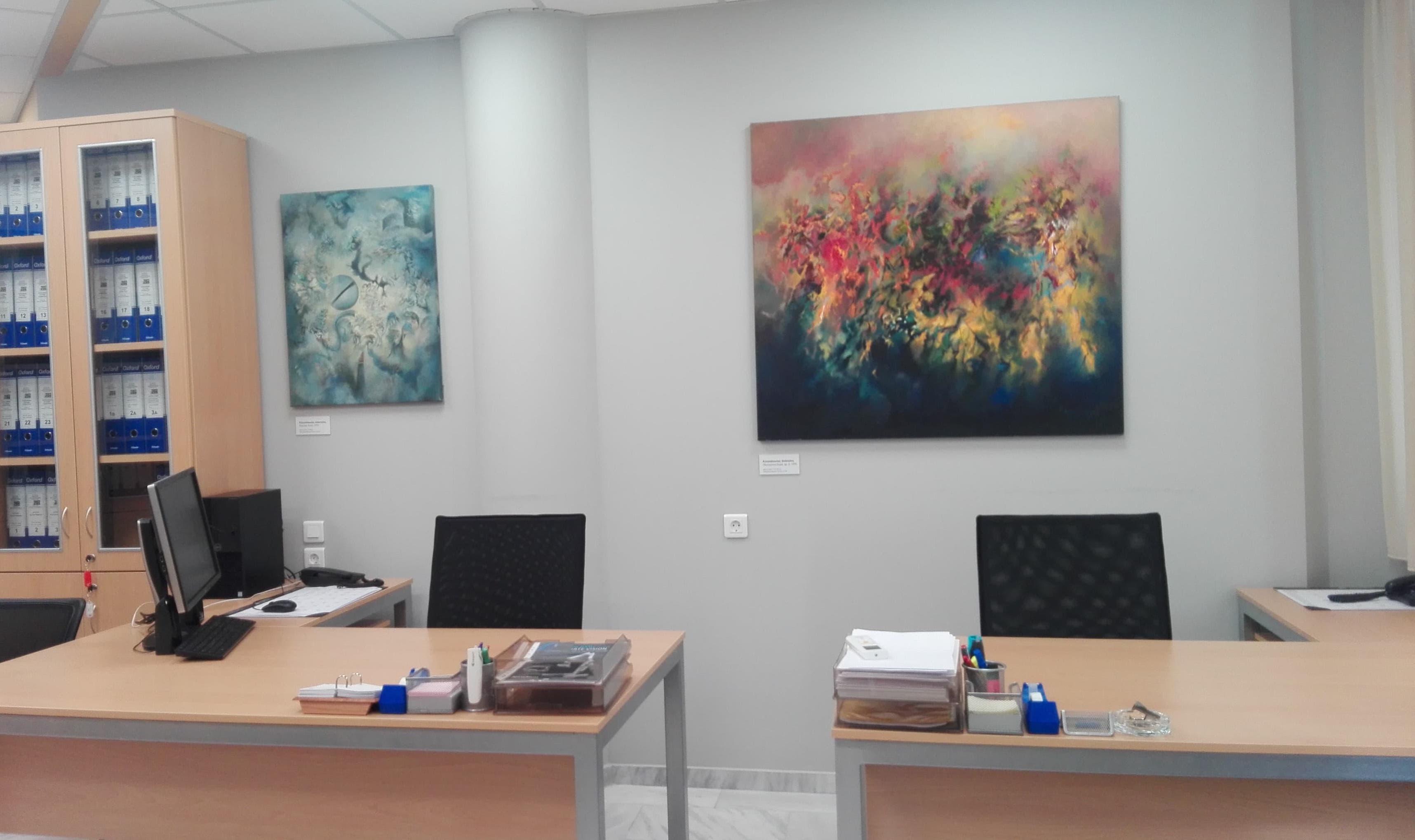 Τα έργα τέχνης, που κοσμούν τα γραφεία, έχουν δημιουργήσει ένα ευχάριστο περιβάλλον τόσο για τους εργαζόμενους, όσο και για κάθε προσερχόμενο στον χώρο προς διεκπεραίωση υποθέσεών του.