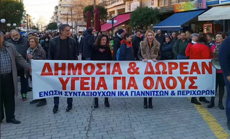 Την Τετάρτη, στα Γιαννιτσά, γιατροί, νοσηλευτές και κάτοικοι διοργάνωσαν συλλαλητήριο διαμαρτυρίας με αφορμή την διάλυση και υπολειτουργία ολόκληρων κλινικών και τμημάτων των νοσοκομείων Έδεσσας και Γιαννιτσών και την υποβάθμιση των κέντρων Υγείας.