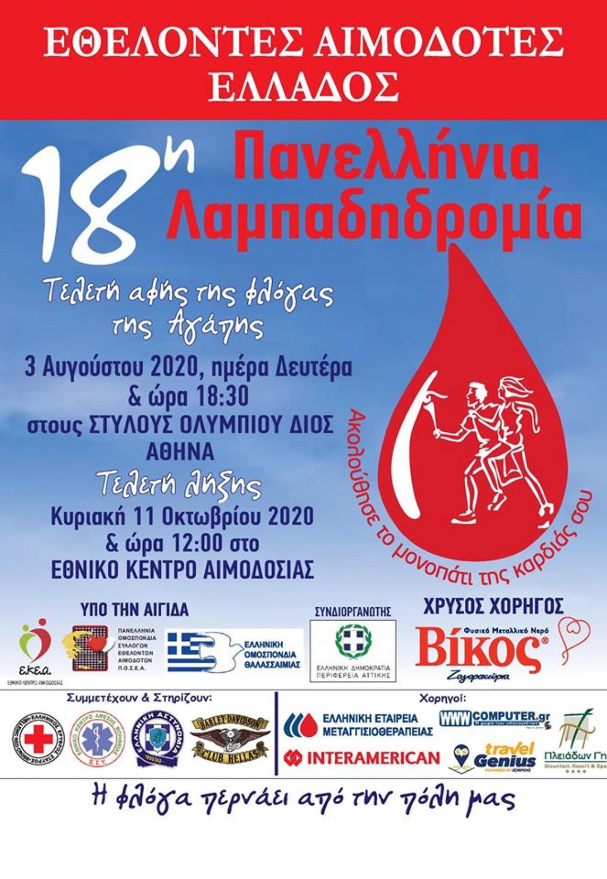 18 Πανελλήνια Λαμπαδηδρομία Εθελοντών Αιμοδοτών.