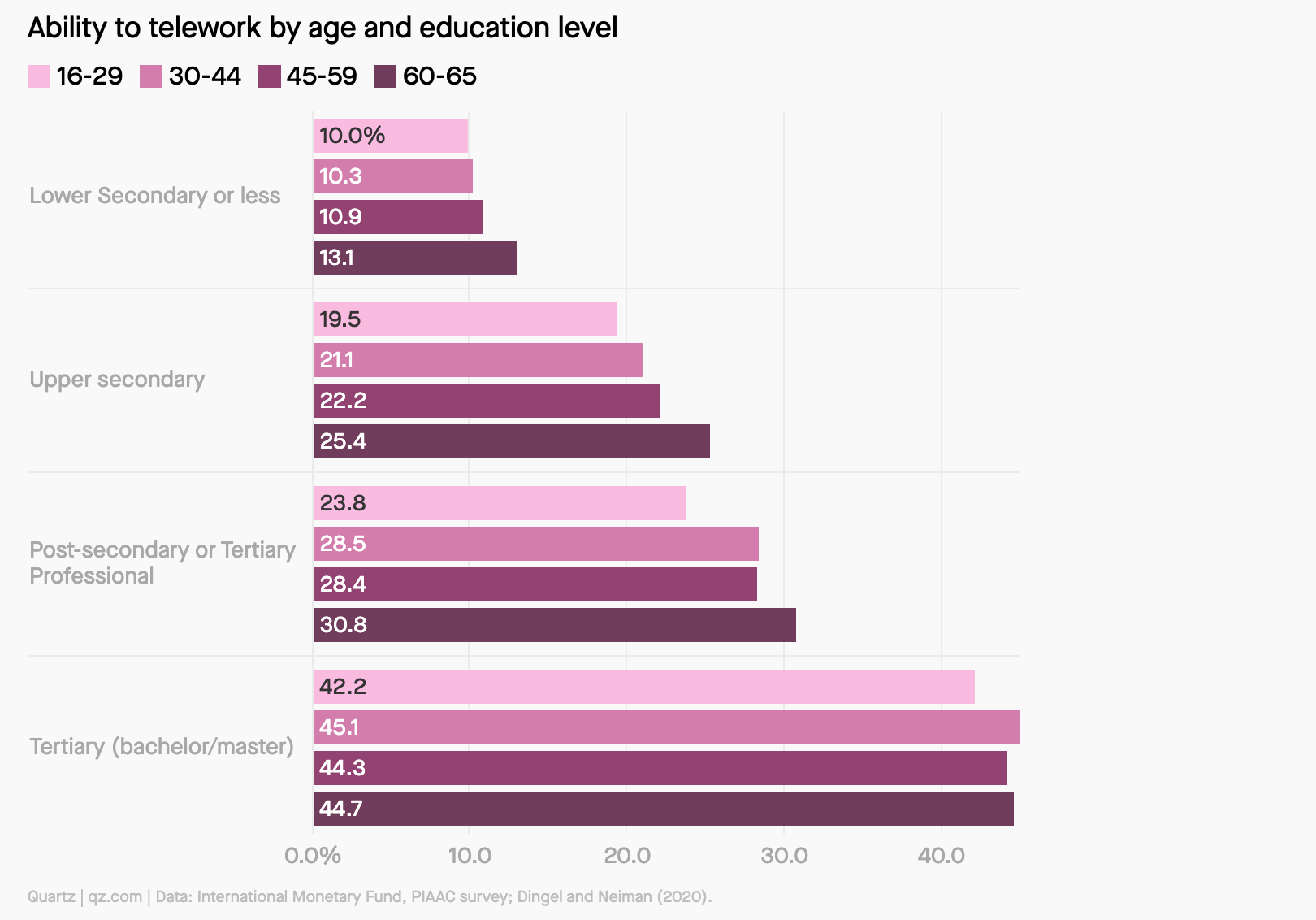 Ωστόσο, εκτιμούν ότι ο αντίκτυπος του Covid-19 θα διαγράψει την πρόοδο που έχει σημειωθεί από το 2008, ειδικά για χώρες με χαμηλό εισόδημα, κυρίως επειδή οι φτωχότεροι άνθρωποι είναι λιγότερο πιθανό να εργαστούν από το σπίτι.