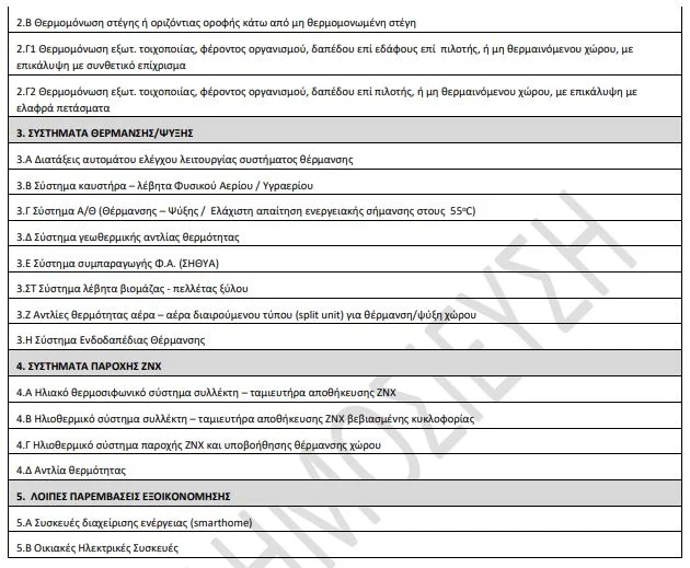 Το Πρόγραμμα καλύπτει επιλέξιμες δαπάνες έως 32.500 ευρώ, για την ενεργειακή αναβάθμιση και ανακαίνιση κατοικίας. Ειδικότερα ανά υποενότητα: