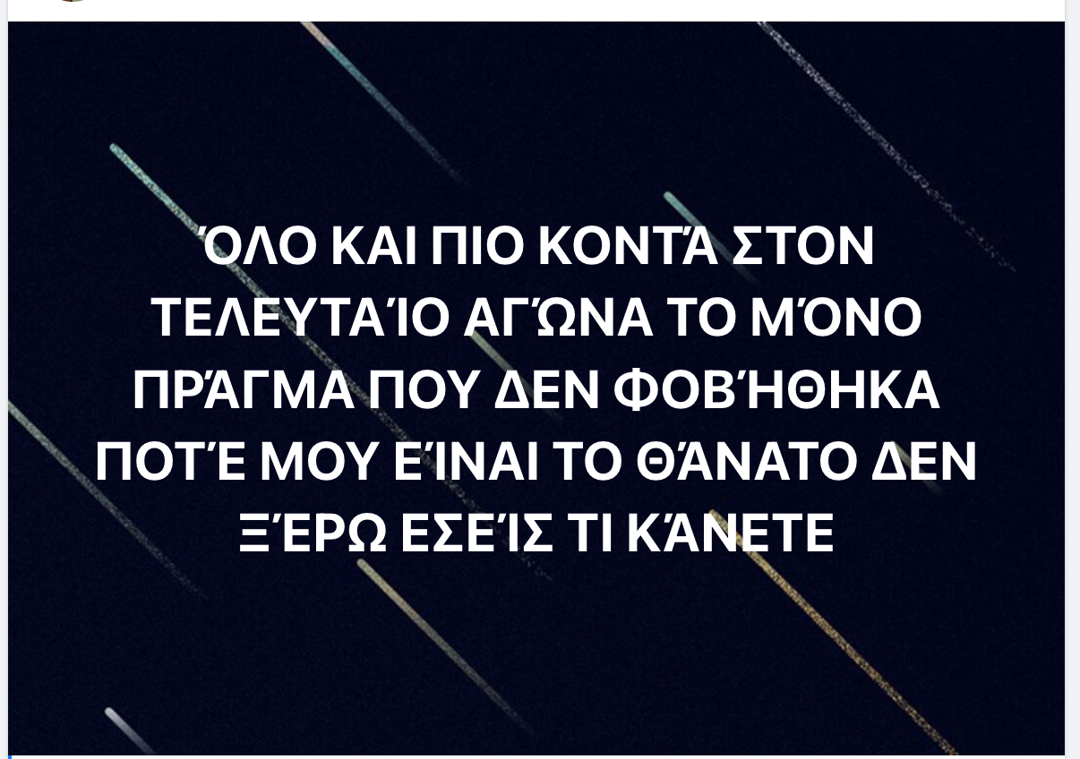 Η τελευταία του ανάρτηση λίγη ώρα πριν το μακελειό ήταν αυτή: