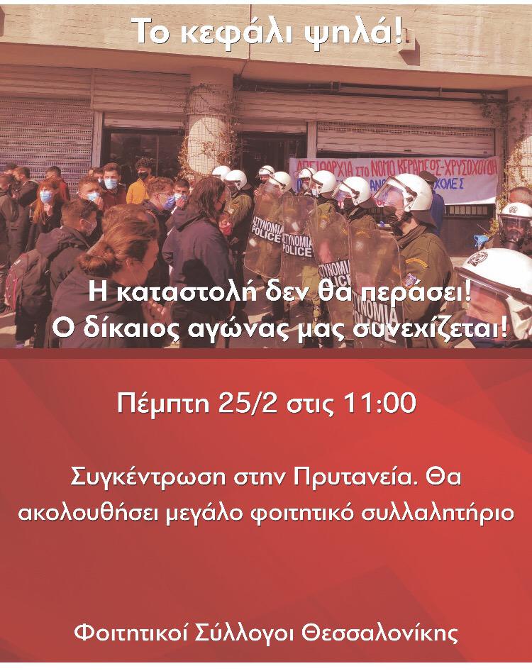Με κεντρικά συνθήματα “Η καταστολή δεν θα περάσει. Ο αγώνας συνεχίζεται”, “Θέλουμε να γίνουμε ξανά φοιτητές” ετοιμάζονται για τη σημερινή διαδήλωση.