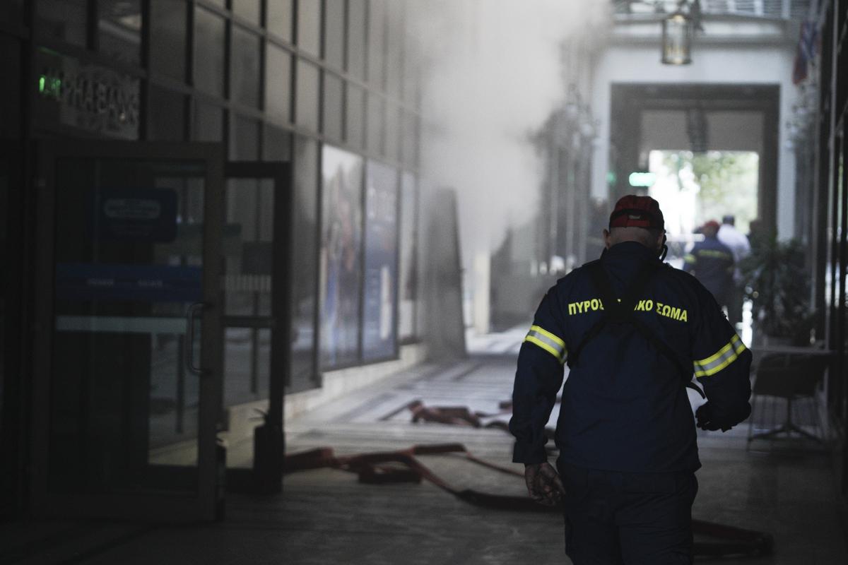 Ολοι οι εργαζόμενοι έχουν βγει από το κτίριο, ενώ υπάρχει καπνός που βγαίνει από το δεύτερο υπόγειο.