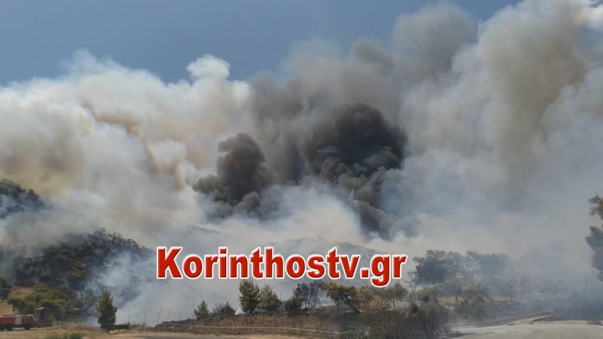 Σύμφωνα με το korinthostv, η φωτιά κατακαίει κοντά στο στρατόπεδο , όπου βρίσκονται αποθήκες πυρομαχικών του Στρατού.