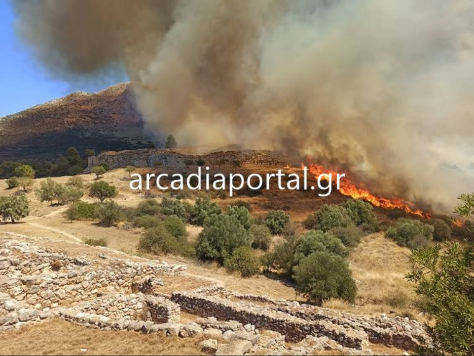 Η φωτιά μαίνεται κοντά στον αρχαιολογικό χώρο των Μυκηνών, ο οποίος και εκκενώθηκε, σύμφωνα με τα τοπικά μέσα. Σύμφωνα με τις πρώτες πληροφορίες η φωτιά καίει ξερά χόρτα μέσα σε ρεματιά με κατεύθυνση την Προσύμνη.