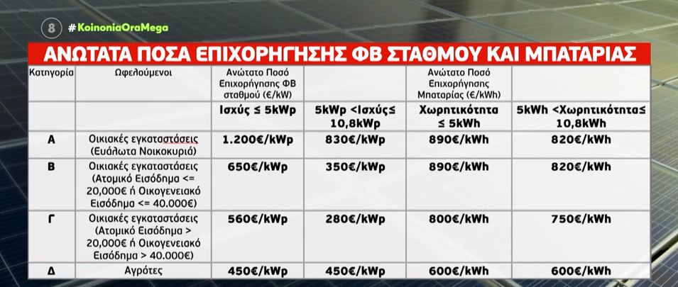 Ο συνολικός προϋπολογισμός του προγράμματος είναι 200 εκατομμύρια ευρώ και η επιδότηση του συστήματος φωτοβολταϊκού φτάνει έως και 75% για νοικοκυριά και 60% για τους αγρότες. Η συνολική επιδότηση του συστήματος φωτοβολταϊκού με μπαταρία μπορεί να φτάσει έως και 16 χιλ. ευρώ για νοικοκυριά και 10 χιλ. ευρώ για αγρότες.