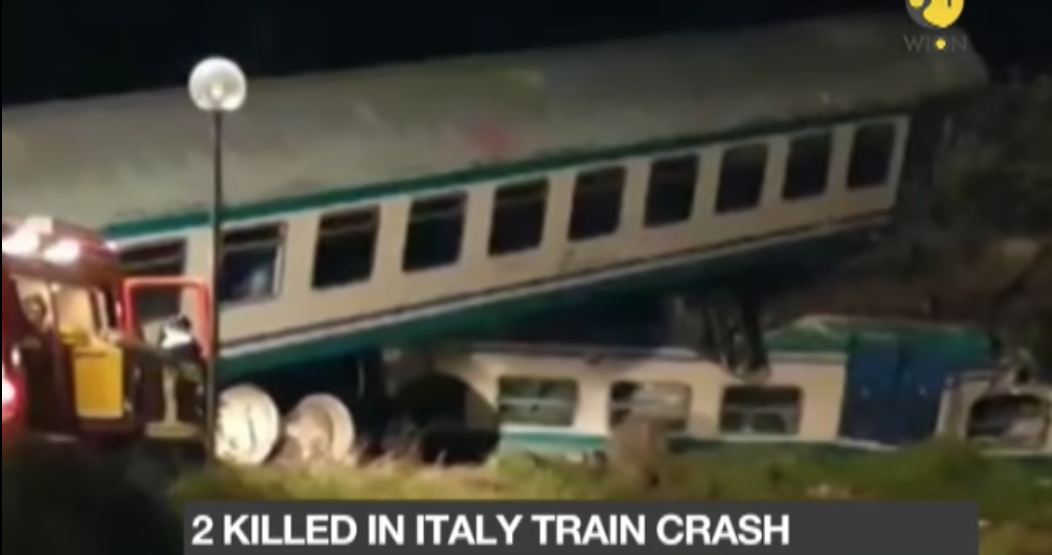 Το τρένο εκτροχιάστηκε όταν συγκρούστηκε με νταλίκα που είχε ακινητοποιηθεί σε ισόπεδη διάβαση λίγο πριν περάσει η αμαξοστοιχία, τρία από τα βαγόνια της οποίας βγήκαν από τις σιδηροτροχιές, όπως εικονίζουν πλάνα που μετέδωσαν ιταλικά τηλεοπτικά δίκτυα.