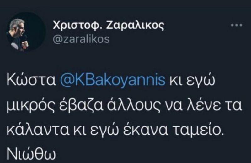 Τι ανέφερε για τον Κώστα Μπακογιάννη στο τελευταίο του tweet ο Έλληνας κωμικός