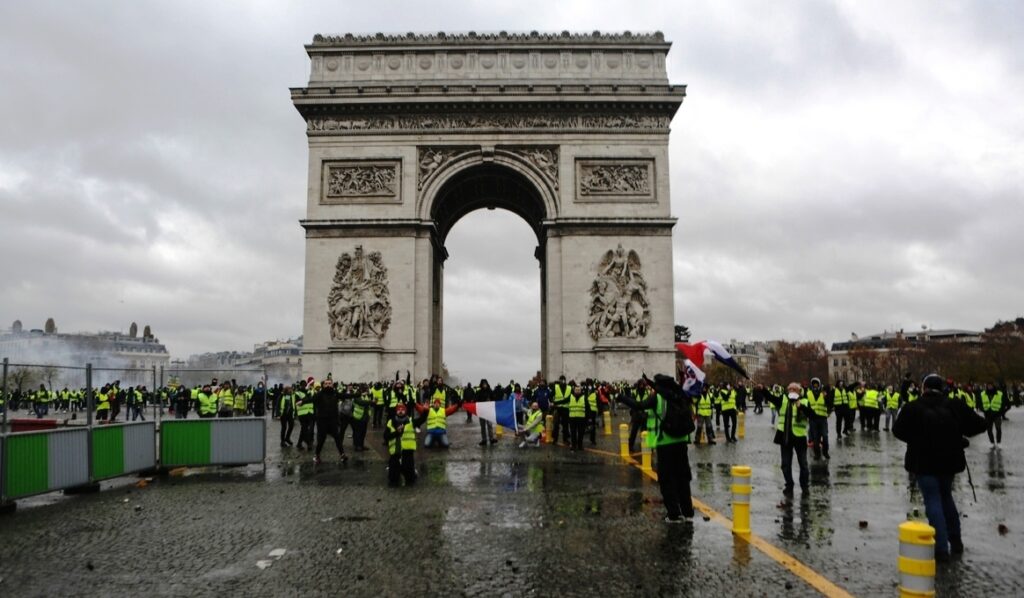 Η εξέγερση των «κίτρινων γιλέκων» συντάραξε την προεδρία του Μακρόν για πολλούς μήνες και αποκάλυψε μια βαθιά ριζωμένη οργή έξω από τις μεγάλες πόλεις για το υψηλό κόστος διαβίωσης και την αστική ελίτ που θεωρείται ότι είναι αποκομμένη από τις καθημερινές δυσκολίες των απλών ανθρώπων.