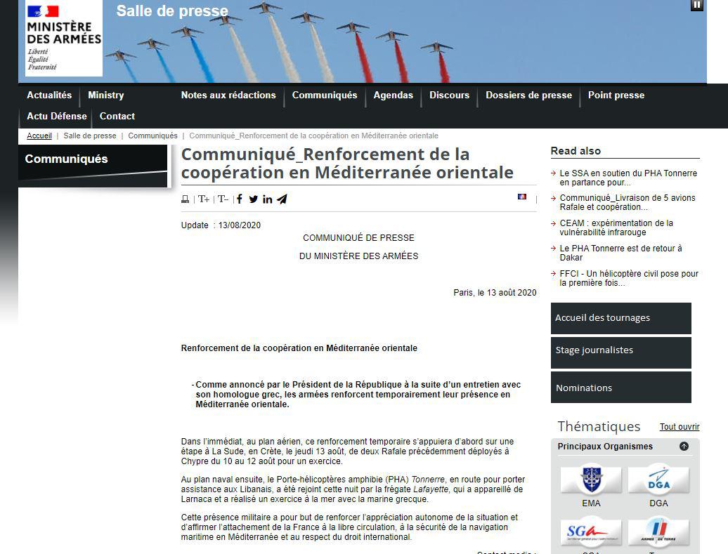 Η ανακοίνωση του γαλλικού υπουργείου Άμυνας