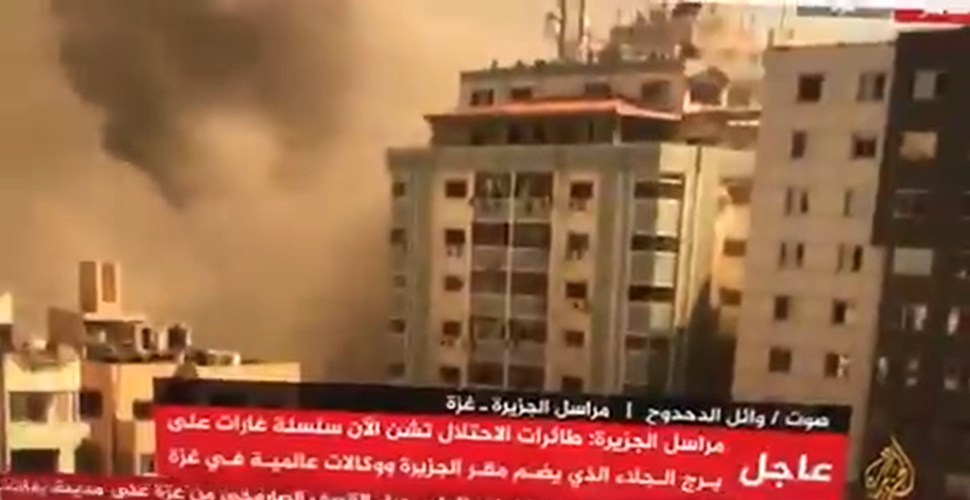 Watch the moment the building that houses Al Jazeera and several other international media agencies is flattened after Israeli warplanes target it with multiple missiles.