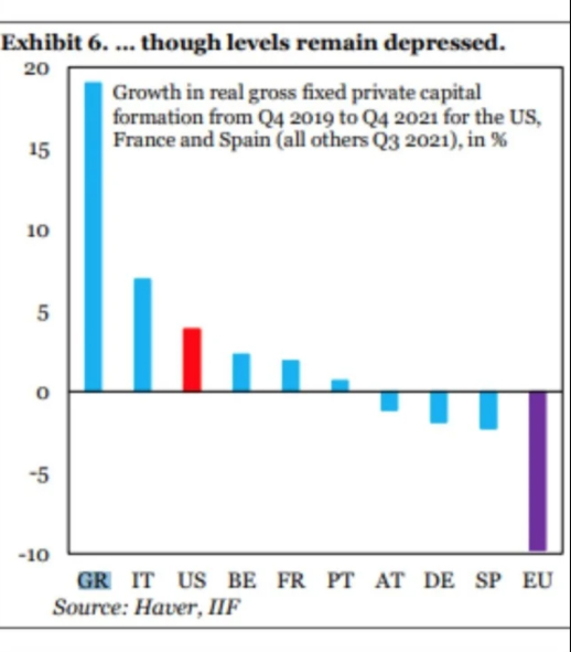 «Τη συγκεκριμένη περίοδο ο ρυθμός πραγματικής αύξησης των επενδύσεων (ακαθάριστου σχηματισμού παγίου κεφαλαίου) προσεγγίζει το 20% στην Ελλάδα, επίδοση που καθιστά τη χώρα μας παγκόσμια πρωταθλήτρια των επενδύσεων και μάλιστα με μεγάλη διαφορά από την δεύτερη χώρα, ενώ μάλιστα στην ευρωζώνη σημειώνεται πτώση της τάξης του 10%.