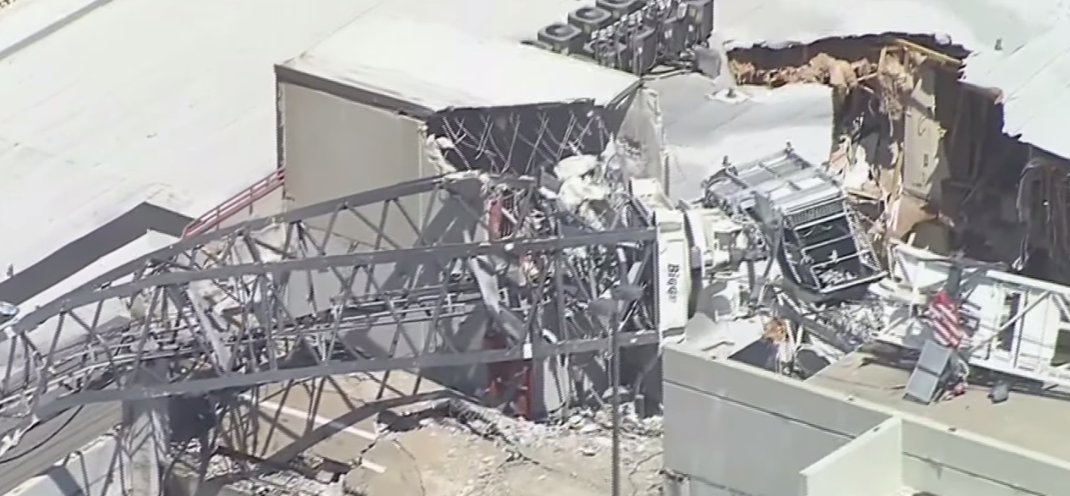 Ο ψηλός γερανός προκάλεσε ζημιές σε πέντε ορόφους του κτιρίου, καθώς και στον χώρο στάθμευσης αυτοκινήτων στο εξωτερικό του, κατά το ίδιο τηλεοπτικό δίκτυο.