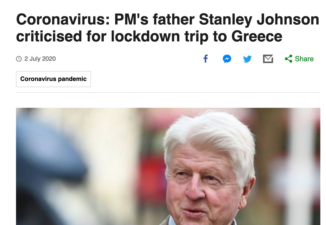 Οι αντιδράσεις στη Μ.Βρετανία πάντως πήραν και πολιτικές διαστάσεις, πέρα από τα δημοσιεύματα στα ΜΜΕ. Για «δύο μέτρα και δύο σταθμά» έκανε λόγο σε δήλωσή του με αφορμή το παραπάνω γεγονός ο Βουλευτής των Φιλελεύθερων – Δημοκρατών Τζέιμι Στόουν, ενώ ο εκπρόσωπος του Βρετανού πρωθυπουργού, ερωτηθείς σχετικά, αρνήθηκε να σχολιάσει την ενέργεια του Στάνλεϊ Τζόνσον. Αντίστοιχα ο κυβερνητικός εκπρόσωπος Στέλιος Πέτσας, αναφορικά με την έλευση του Στάνλεϊ Τζόνσον στην Ελλάδα τόνισε ότι «έχουμε απαγορεύσει τις απευθείας πτήσεις μέχρι τις 15 Ιουλίου από Ηνωμένο Βασίλειο και Σουηδία. Αν κάποιος πολίτης αυτών των χωρών φτάσει στην Ελλάδα μέσω άλλης οδού, φυσικά και μπορεί να έρθει, αλλά πάντα με γνώμονα την προστασία της δημόσιας υγείας. Είναι πιο στοχευμένοι οι έλεγχοί μας από φορτισμένες επιδημιολογικά περιοχές» συμπλήρωσε.
