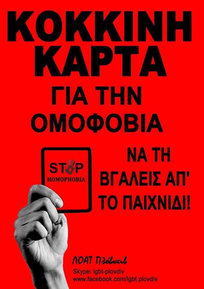 Η LGBT ξεκίνησε πάλι την φωτογραφική της καμπάνιας με τίτλο «Κόκκινη κάρτα ενάντια στην ομοφοβία». Είναι μια καμπάνια στην οποία οι συμμετέχοντες τραβούν φωτογραφίες με μια “κόκκινη κάρτα κατά της ομοφοβίας” (όπως η κόκκινη κάρτα στο ποδόσφαιρο). Μπορείτε να δείτε τις φωτογραφίες στο λογαριασμό τους στο Facebook και στο Instagram: