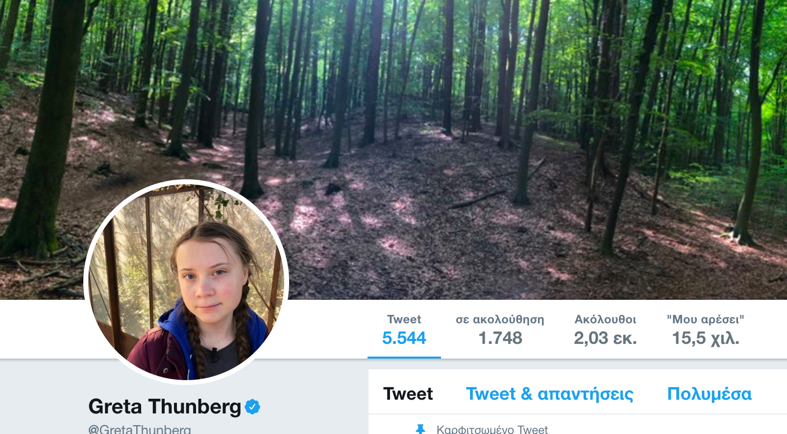 Η Γκρέτα Τούνμπεργκ άλλαξε το προφίλ της στο Twitter, αντιγράφοντας την ειρωνική περιγραφή του προέδρου Τραμπ