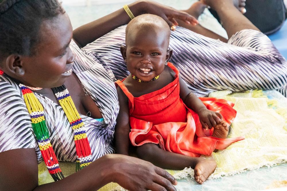 Νότιο Σουδάν – ©Igor Barbero/MSF Η νοσηλεύτρια των Γιατρών Χωρίς Σύνορα, Μπάρμπαρα Γκαρσία και η Νάιματς παίζουν με ένα αυτοσχέδιο μπαλόνι από χειρουργικό γάντι στον θάλαμο νοσηλείας του νοσοκομείου των Γιατρών Χωρίς Σύνορα στο Ουλάνγκ, στο βορειοανατολικό Νότιο Σουδάν.