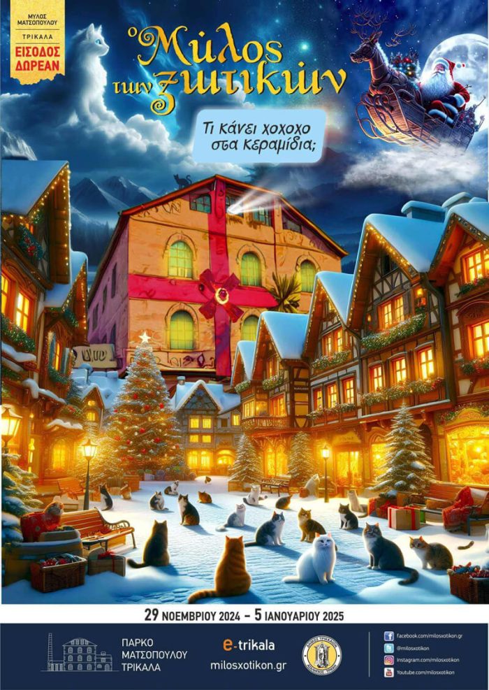 Ο Άγιος Βασίλης βλέποντας τις γάτες και τα ξωτικά με τα χριστουγεννιάτικα καπέλα, τα τραγούδια και τους χορούς τους, γέλασε και είπε: «Φαίνεται πως φέτος θα έχουμε τα πιο μαγικά Χριστούγεννα στα Τρίκαλα»!