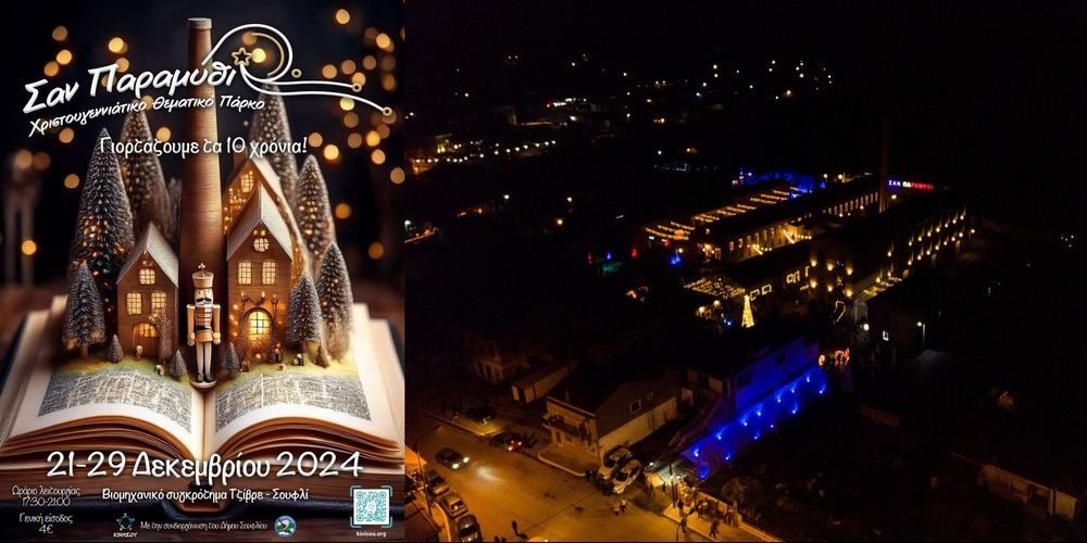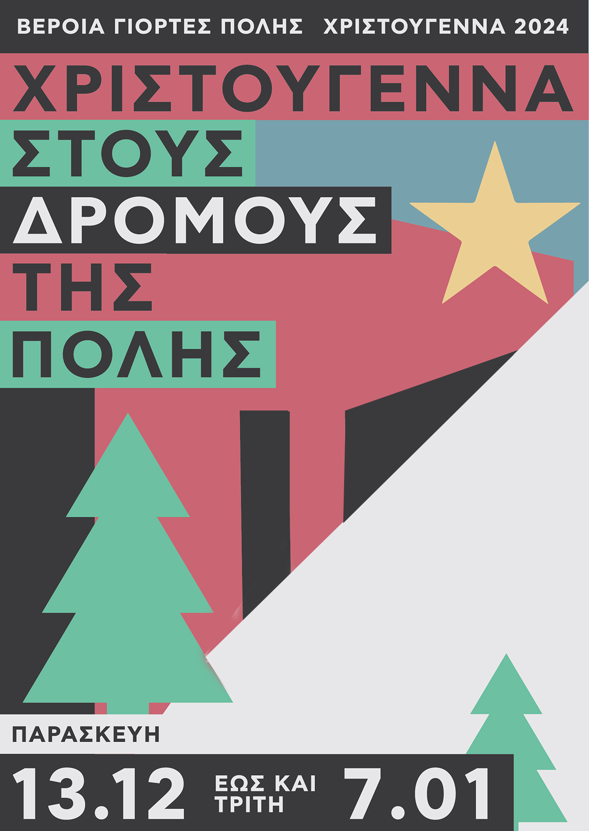ΤΕΤΑΡΤΗ 11 ΔΕΚΕΜΒΡΙΟΥ 2024 ————————————————————————————— 17:30 – Παλιά Μουσική – Τζαμί Χαλίλ Μπέη. Ο Εξωραϊστικός Πολιτιστικός Σύλλογος Παναγίας «Το Κάστρο», φωταγωγεί το Χριστουγεννιάτικο δέντρο του. Ταξίδι στη μαγεία των ημερών με εορταστικές μελωδίες και κάλαντα από την χορωδία του Συλλόγου. Παρέα με τον Άγιο Βασίλη που θα μοιράζει δώρα, διαδραστικές δραστηριότητες και ζωγραφική προσώπου για παιδιά. Στην Χριστουγεννιάτικη γιορτή θα συμμετέχουν οι μαθητές του 7ου Δημοτικού Σχολείου. 18:00 – 2ο ΚΑΠΗ Βύρωνα. Χριστουγεννιάτικη γιορτή για παιδιά και ενήλικες από τον Εξωραϊστικό Πολιτιστικό Σύλλογο Αγίας Παρασκευής.