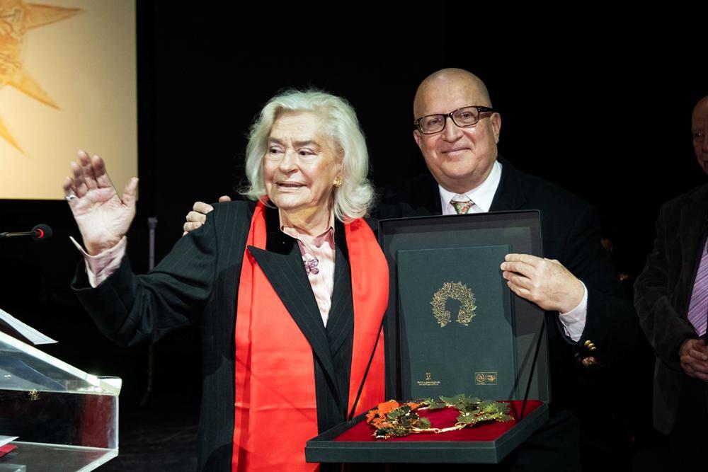 Η Καρυοφυλλιά Καραμπέτη τιμήθηκε με το Βραβείο Αρχαίου Δράματος, για τον ρόλο της Άτοσσας στους “Πέρσες” του Αισχύλου σε σκηνοθεσία ‘Αρη Μπινιάρη. “Ο ρόλος αυτός ήταν μια από τις πιο συγκλονιστικές στιγμές της καριέρας μου” είπε η αγαπημένη ηθοποιός, παραλαμβάνοντας το βραβείο. “Θα ήθελα να το αφιερώσω σε τρεις σημαντικούς ανθρώπους: στον Μηνά Χατζησάββα, στον Γιώργο Μιχαηλίδη αλλά και στον Αριστοτέλη Αποσκίτη» συνέχισε η ίδια, κάνοντας την αίθουσα να ξεσπάσει σε χειροκροτήματα.