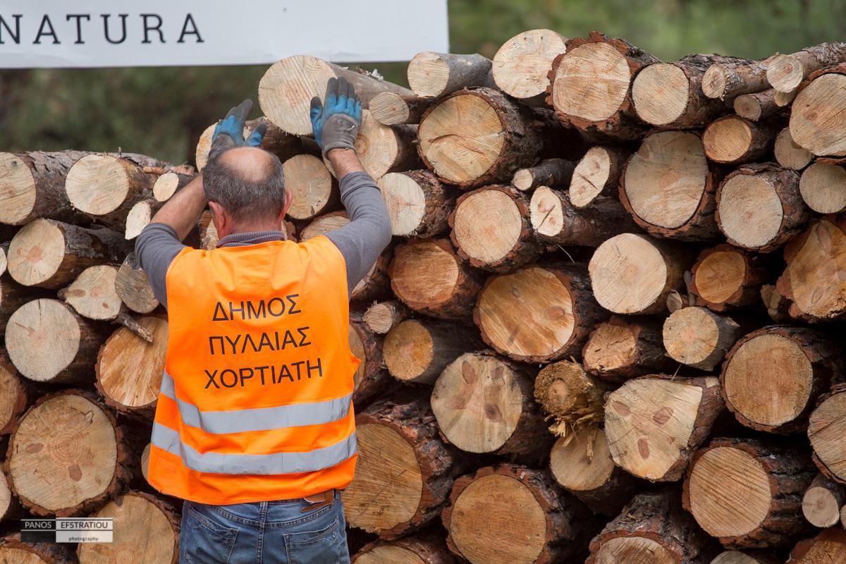 Συνοδεία του αντιδημάρχου Καθαριότητας, Περιβάλλοντος και Ανακύκλωσης Δ.Ε. Πανοράματος και Πυλαίας, Γιάννη Καρτάλη, δασολόγων και επιστημονικού προσωπικού του δήμου και του δασαρχείου Θεσσαλονίκης ο κ. Καϊτεζίδης επιθεώρησε τις εργασίες κοπής των πεύκων που έχουν προσβληθεί από το έντομο. Ο δήμαρχος ενημερώθηκε ότι με αφετηρία την περιοχή Ανάληψη Πανοράματος -όπου έχουν ήδη ολοκληρωθεί οι εργασίες και έχουν κοπεί εκατοντάδες «άρρωστα» δέντρα- τα εξειδικευμένα συνεργεία των υλοτόμων μετακινούνται σε οριζόντια γραμμή προς τα ανατολικά, κυριολεκτικά «χτενίζοντας» τις δασικές εκτάσεις από τις οποίες περνούν. Οι εργασίες εκτελούνται από ειδικά συνεργεία συνεταιρισμού υλοτόμων σε συνεργασία με το προσωπικό του δήμου και πάντοτε με τις υποδείξεις στελεχών του δασαρχείου Θεσσαλονίκης, και δασολόγων του δήμου Πυλαίας-Χορτιάτη. Τα δέντρα που έχουν προσβληθεί κόβονται με σύγχρονα κοπτικά μηχανήματα και βενζινοκίνητα αλυσοπρίονα. Στη συνέχεια μετακινούνται εκτός του δάσους τα προϊόντα ξυλείας που προέρχονται από την υλοτόμηση. Στη συγκεκριμένη φάση των εργασιών τα δασικά προϊόντα (κορμοί δέντρων, ξυλεία κλπ) τοποθετούνται σε στοίβες σε ειδικά σημεία της διαδρομής από την περιοχή «Πλατανάκια» προς τον Κισσό, προκειμένου να θρυμματιστούν και να μετατραπούν σε ειδικό καύσιμο (μπριγκέτες και πέλετ) χωρίς επιβάρυνση του δήμου.