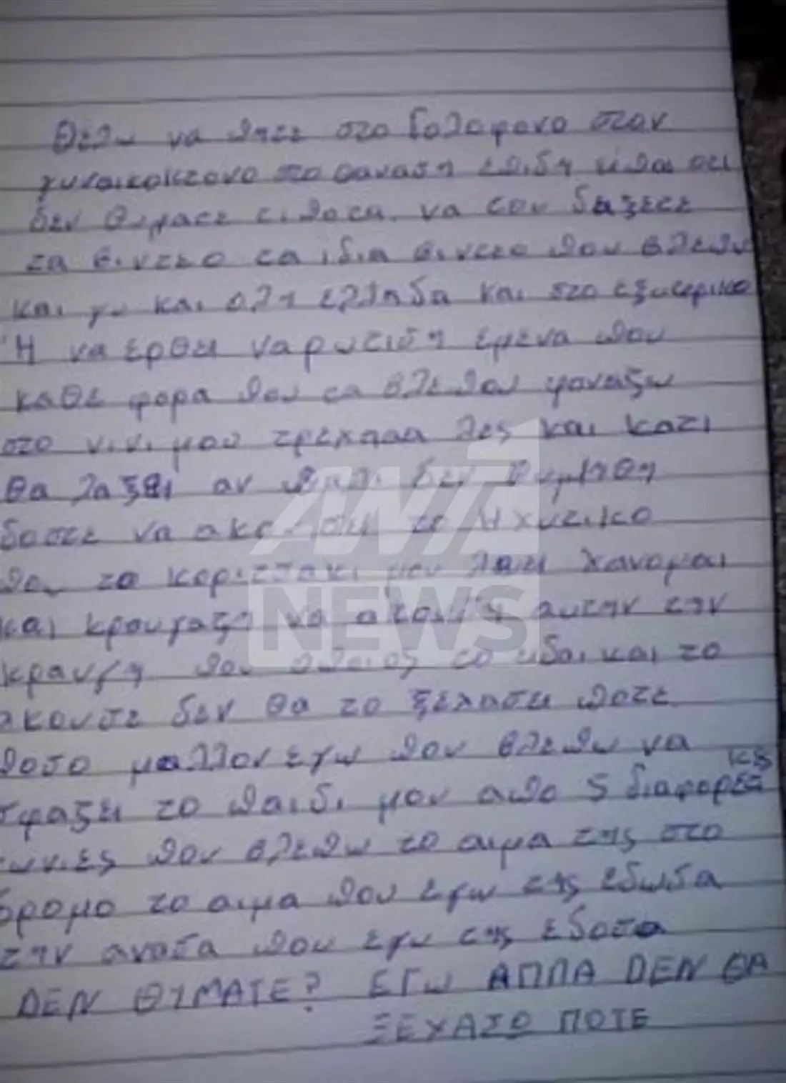Ο ΑΝΤ1 φέρνει στο φως, την χειρόγραφη επιστολή της μητέρας της Κυριακής προς τον δολοφόνο της κόρης της στους Αγίους Αναργύρους, λίγο πριν εισαχθεί στο νοσοκομείο.