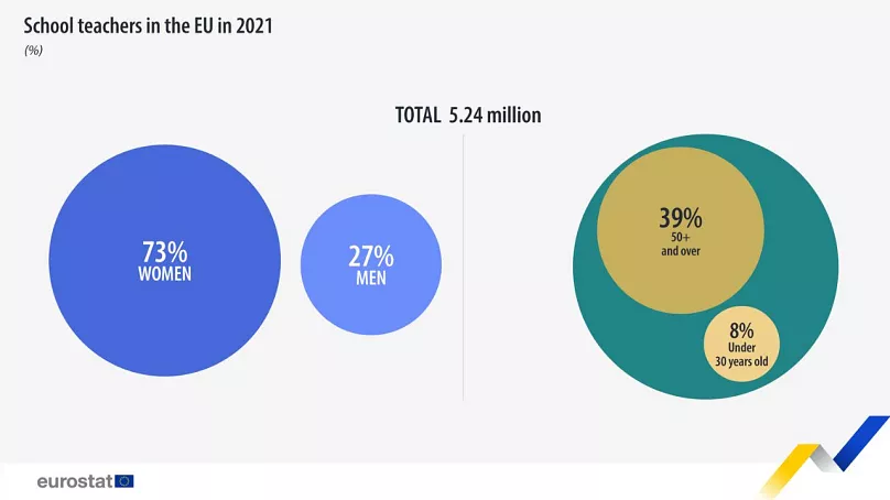 Το 2021, μόνο το 8% του συνολικού εκπαιδευτικού εργατικού δυναμικού ήταν ηλικίας κάτω των 30 ετών, σύμφωνα με τη Eurostat.