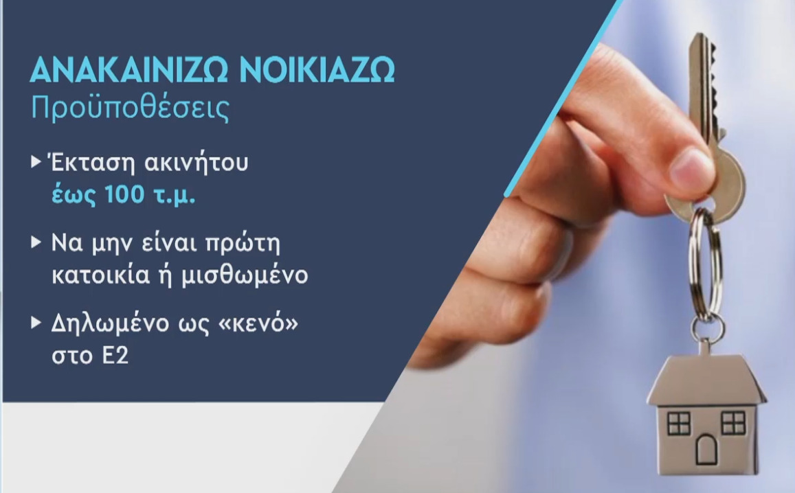 Βελτιωμένο και με δυνατότητα για ανακαινίσεις ύψους μέχρι 13.500 ευρώ και σε ποσοστό επιδότησης 60% έρχεται το πρόγραμμα «Ανακαινίζω – Νοικιάζω».