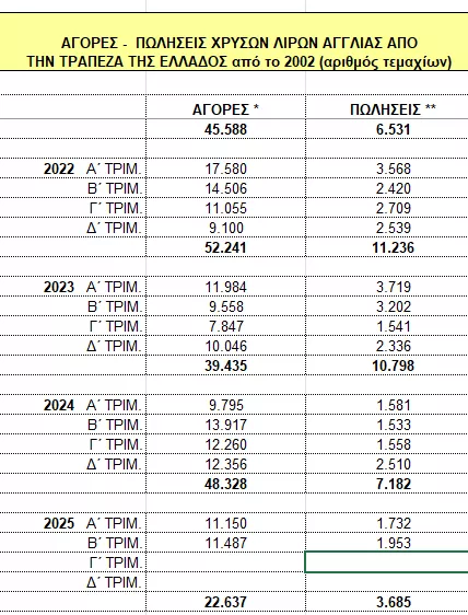Η άνοδος των τιμών του χρυσού έχει συμπαρασύρει και τη χρυσή λίρα, με ολοένα και πιο πολλούς να «τρέχουν» στην Τράπεζα της Ελλάδος για να τις πουλήσουν.