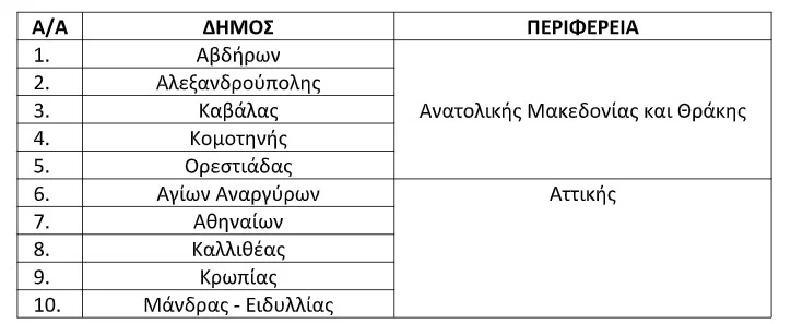 Σε περίπτωση που υπάρξουν αλλαγές ή/και προσθήκες σχετικά με τους Δήμους στους οποίους θα υλοποιηθεί η πιλοτική εφαρμογή της Δράσης, θα υπάρξει σχετική ενημέρωση και μέσω δελτίου τύπου.