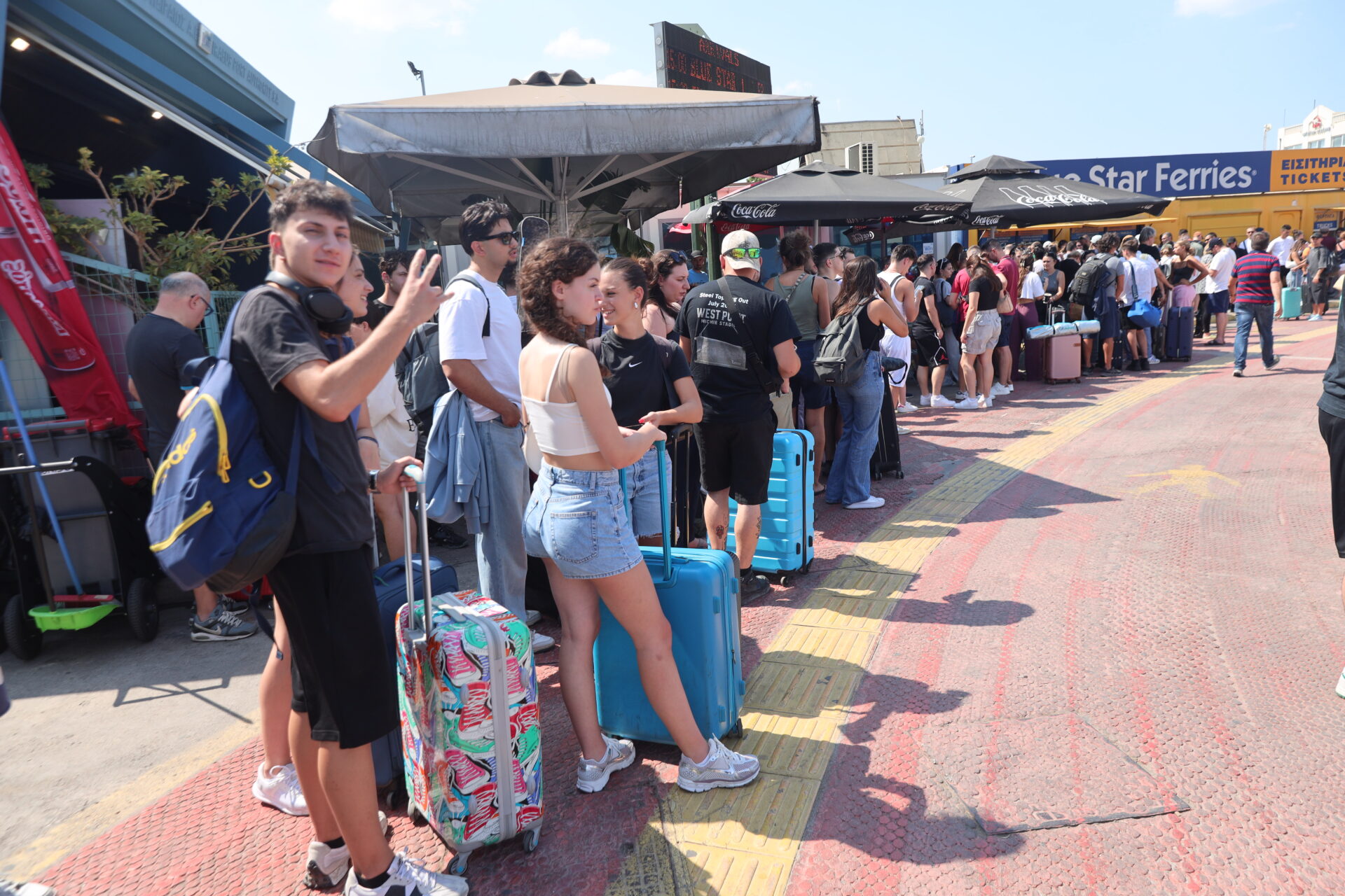 Εκατοντάδες εκδρομείς που έφθασαν στο λιμάνι για να φύγουν με τα πρωινά δρομολόγια, ενημερώθηκαν ότι είναι σε ισχύ μέχρι νεωτέρας απαγορευτικό απόπλου, με αποτέλεσμα να δημιουργούνται ουρές αναμονής, μπροστά από τους καταπέλτες των πλοίων.