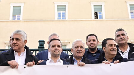 Αθήνα: Διαμαρτυρία δημάρχων έξω από τη Βουλή – «Δώστε πόρους στους ΟΤΑ και όχι στους φραπέδες που κλέβουν τα λεφτά»