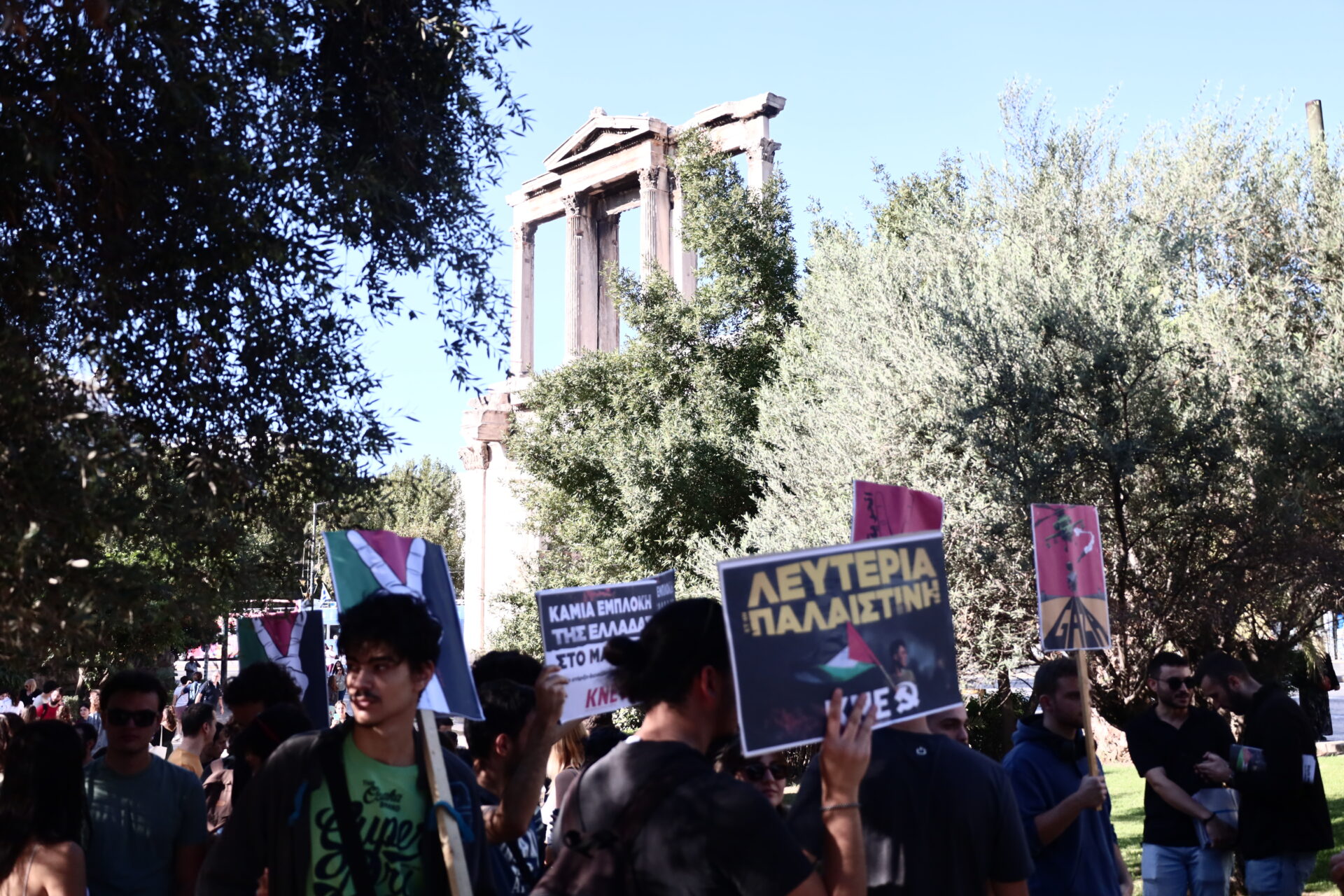 Διαμαρτυρία υπέρ της Παλαιστίνης πραγματοποιήθηκε κατά τη διάρκεια της μαθητικής παρέλασης στην Αθήνα.