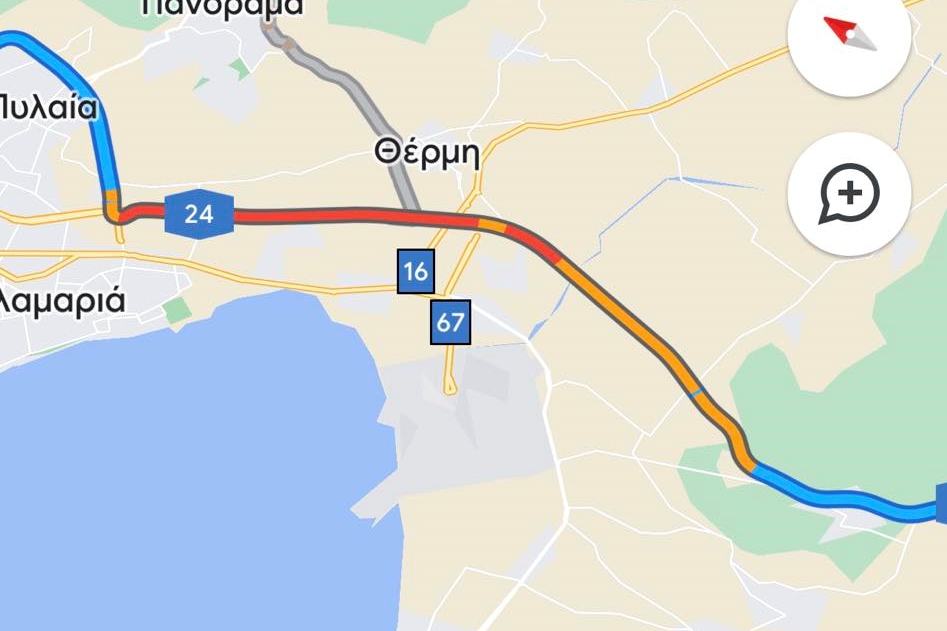 Η αυξημένη κίνηση και το μποτιλιάρισμα ξεκινάει από το ύψος του Cosmos μέχρι και μετά την Θέρμη.