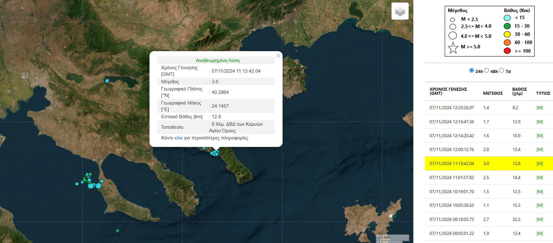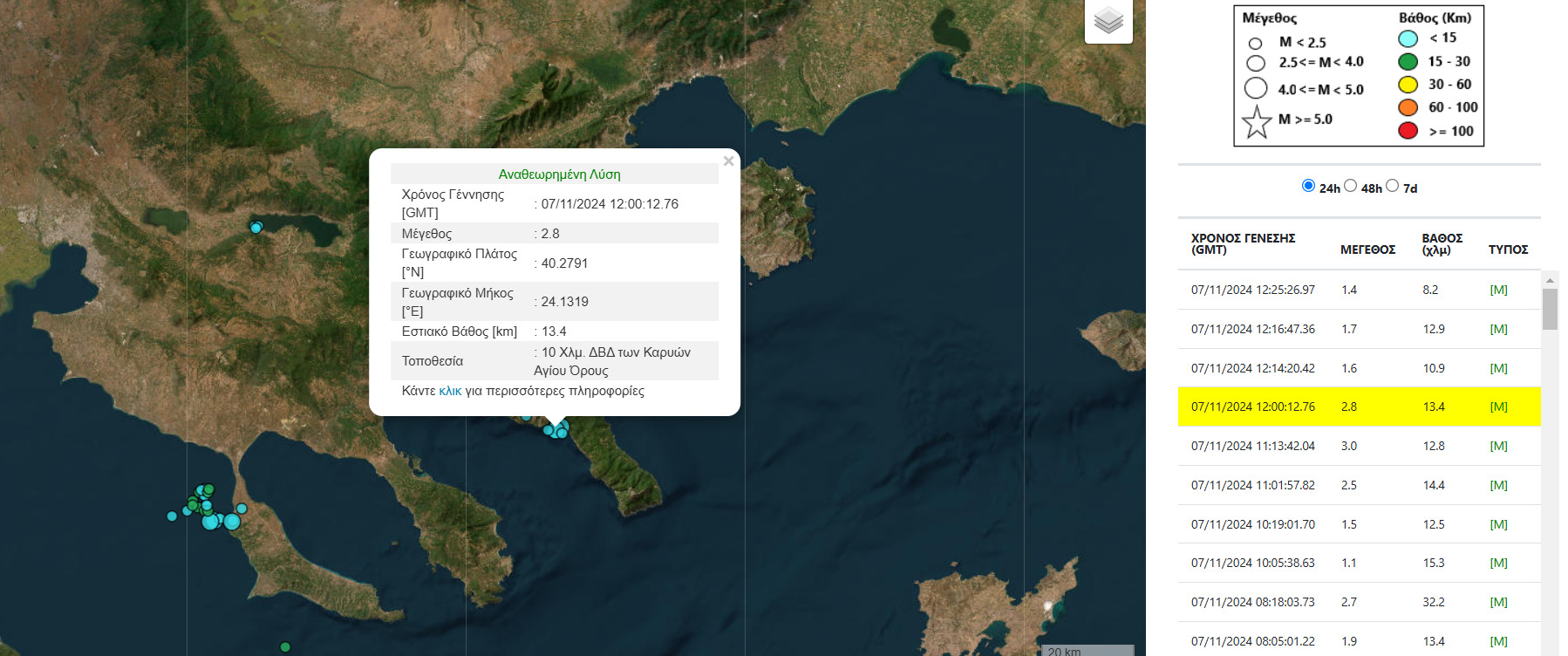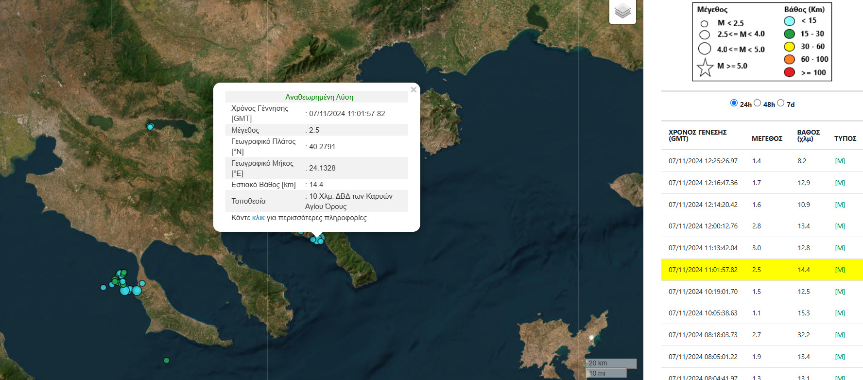 Παράλληλα, το επίκεντρο εντοπίστηκε στα 10 χιλιόμετρα βορειοδυτικά των Καρυών Αγίου Όρους, ενώ το εστιακό βάθος ήταν στα 12.7 χιλιόμετρα.