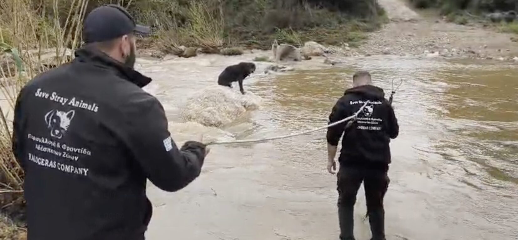 Χαλκιδική: Βίντεο από τη διάσωση δύο σκύλων στον Ολύνθιο ποταμό