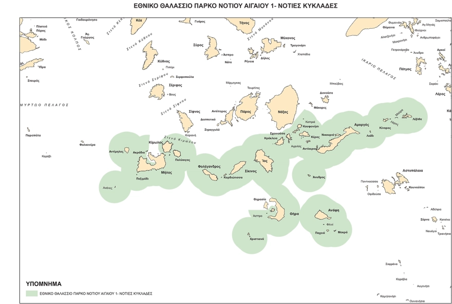 Εν προκειμένω, οι ίδιες πηγές αναφέρουν ότι οι νότιες Κυκλάδες προτεραιοποιήθηκαν, επειδή είναι το πιο ευαίσθητο περιβαλλοντικά οικοσύστημα. Η περιοχή του πάρκου συμπεριλαμβάνει ένα πολύ σημαντικό οικολογικά τμήμα του Αιγαίου, το οποίο ταυτόχρονα δέχεται ισχυρές πιέσεις λόγω κυρίως του τουρισμού. Ως προς το Ιόνιο, η περιοχή του πάρκου είναι καίριας σημασίας για πολλά είδη θαλάσσιων θηλαστικών που χρησιμοποιούν την ελληνική τάφρο του Ιονίου ως κύρια περιοχή διαβίωσης και απειλούνται από ανθρωπογενείς πιέσεις όπως οι συγκρούσεις με πλοία και ο υποθαλάσσιος θόρυβος.